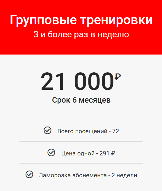 Групповые тренировки — 3 раза в неделю (6 месяцев)